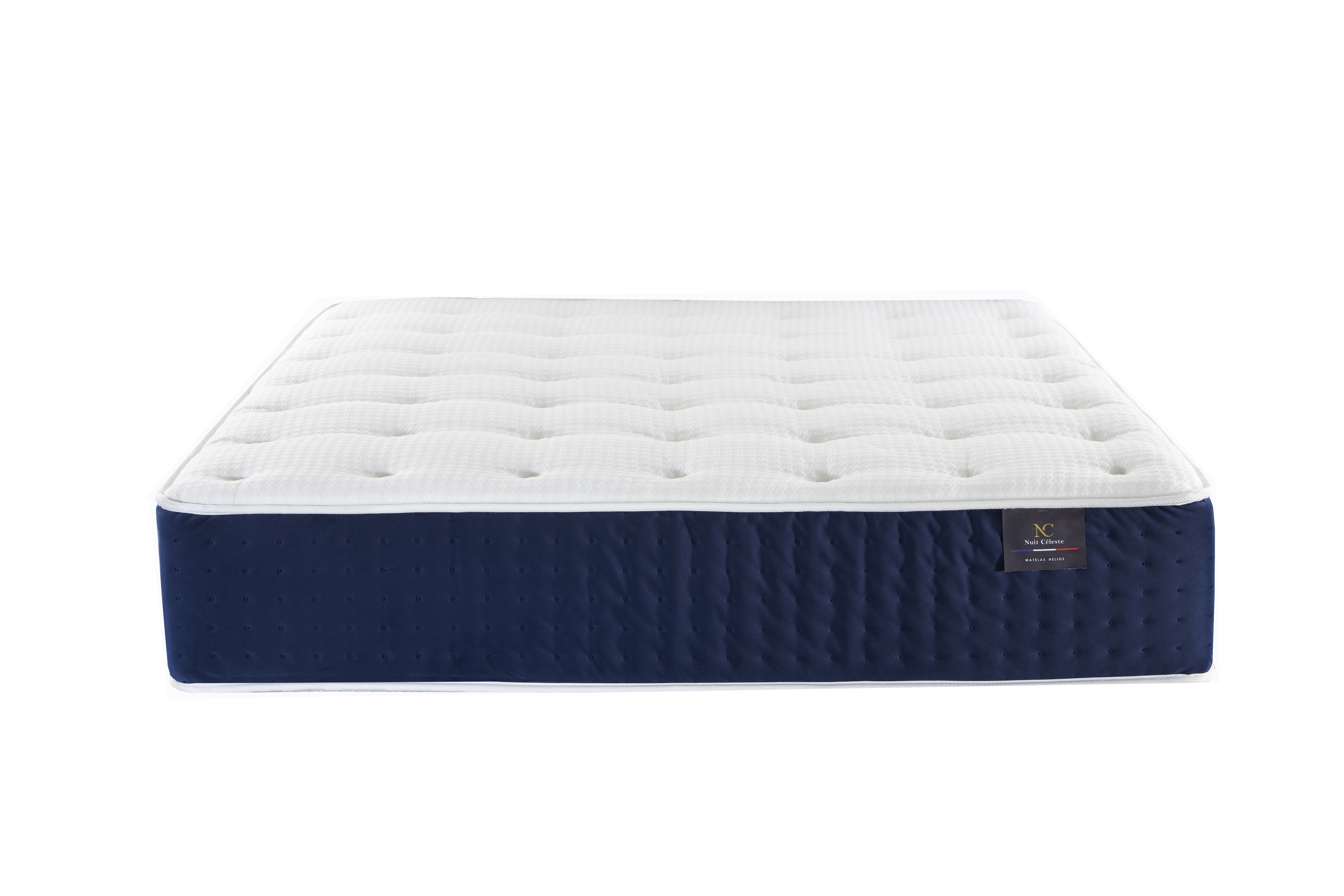 Alliance de technologie, de noblesse et d’élégance, le matelas HÉLIOS Bleu incarne l’excellence du bien-dormir à la Française.