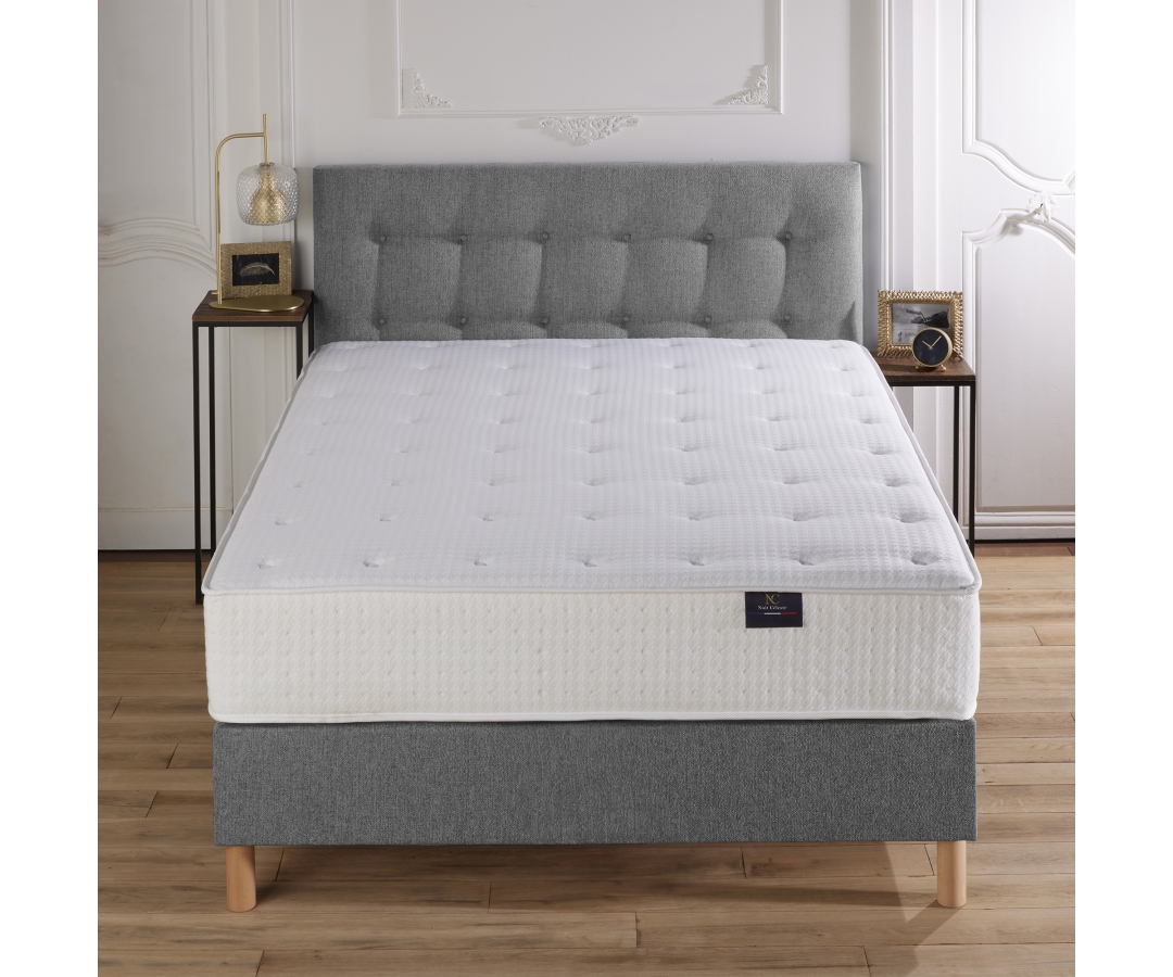 Découvrez notre matelas à ressorts ensachés et mémoire de forme, d’une épaisseur de 27 cm, qui épouse parfaitement les formes de votre corps pour un confort optimal et des nuits paisibles.